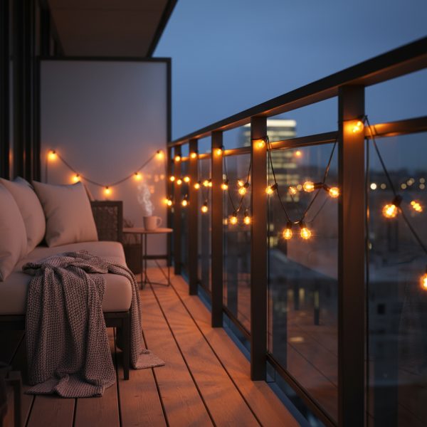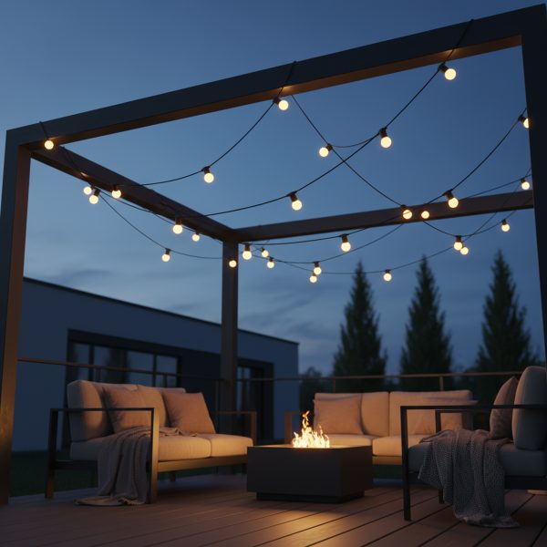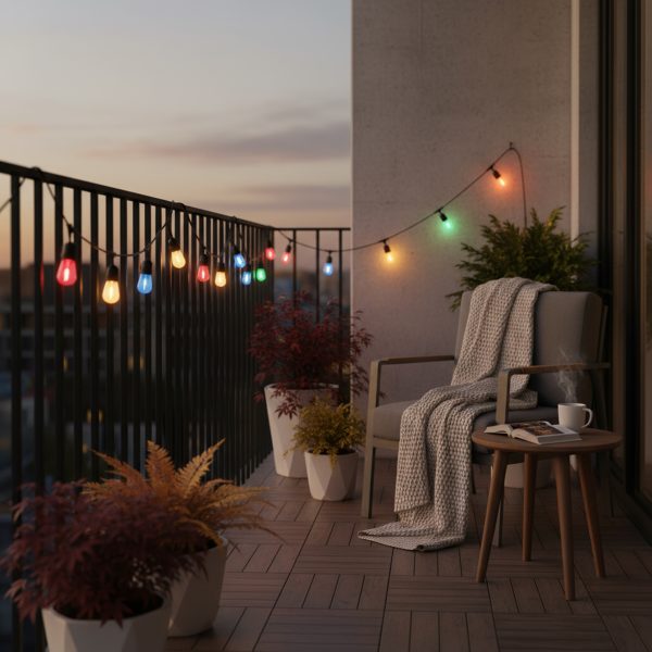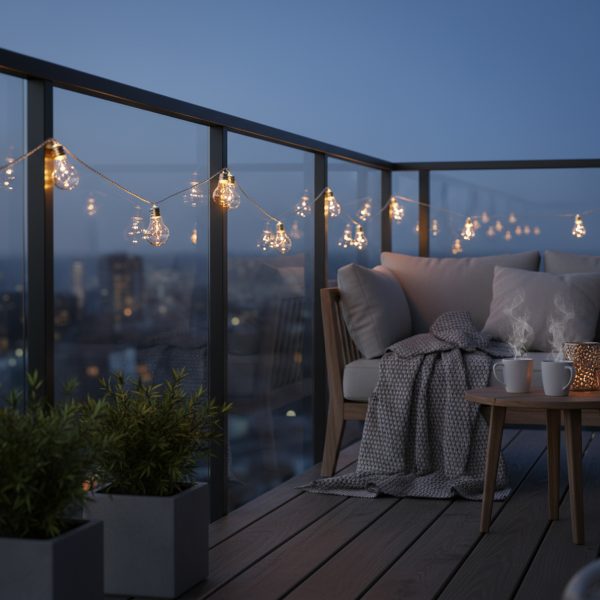 Girlandy świetlne to jeden z najbardziej uniwersalnych dodatków, który szczególnie efektownie prezentuje się jesienią, kiedy otoczenie zyskuje ciepłe, złote odcienie. Miękkie, delikatnie rozproszone światło girland optycznie ociepla przestrzeń tarasu czy balkonu, tworząc przytulny nastrój i naturalną „ramę światła”. Dzięki temu jesienne liście, drewno oraz tekstylne dodatki — koce czy poduszki — nabierają jeszcze bardziej intensywnych, nasyconych barw.