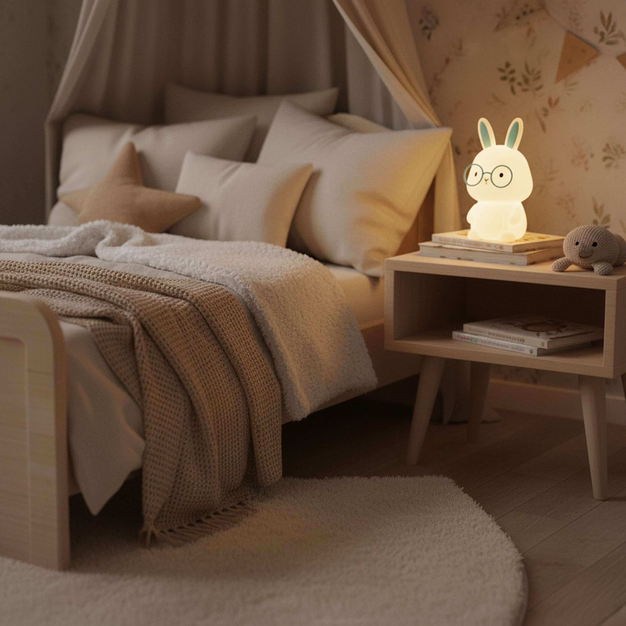 Lampka nocna uspokaja, wprowadza łagodne przejście między zabawą a snem, sygnalizuje, że „poranek już się skończył”, a zaczyna się regeneracja, daje poczucie opieki — nawet gdy rodzic wychodzi z pokoju. To dlatego wiele dzieci zasypia szybciej i spokojniej, gdy w pokoju pali się ciepła, delikatna lampka.