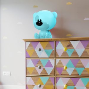 Lampka dekoracyjna Sanico Goldlux Polux MIŚ BIBI to wyjątkowe oświetlenie stworzone z myślą o pokoju dziecięcym. Jej oryginalny design w kształcie misia w połączeniu z przyjemnym, niebieskim kolorem nadaje wnętrzu ciepła i uroku, a jednocześnie pobudza wyobraźnię najmłodszych. Dzięki trójstopniowej regulacji jasności i intuicyjnemu, dotykowemu włącznikowi, lampka umożliwia dostosowanie oświetlenia do każdej sytuacji – od spokojnego nastroju na dobranoc, po jaśniejsze światło sprzyjające zabawie lub czytaniu.
