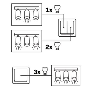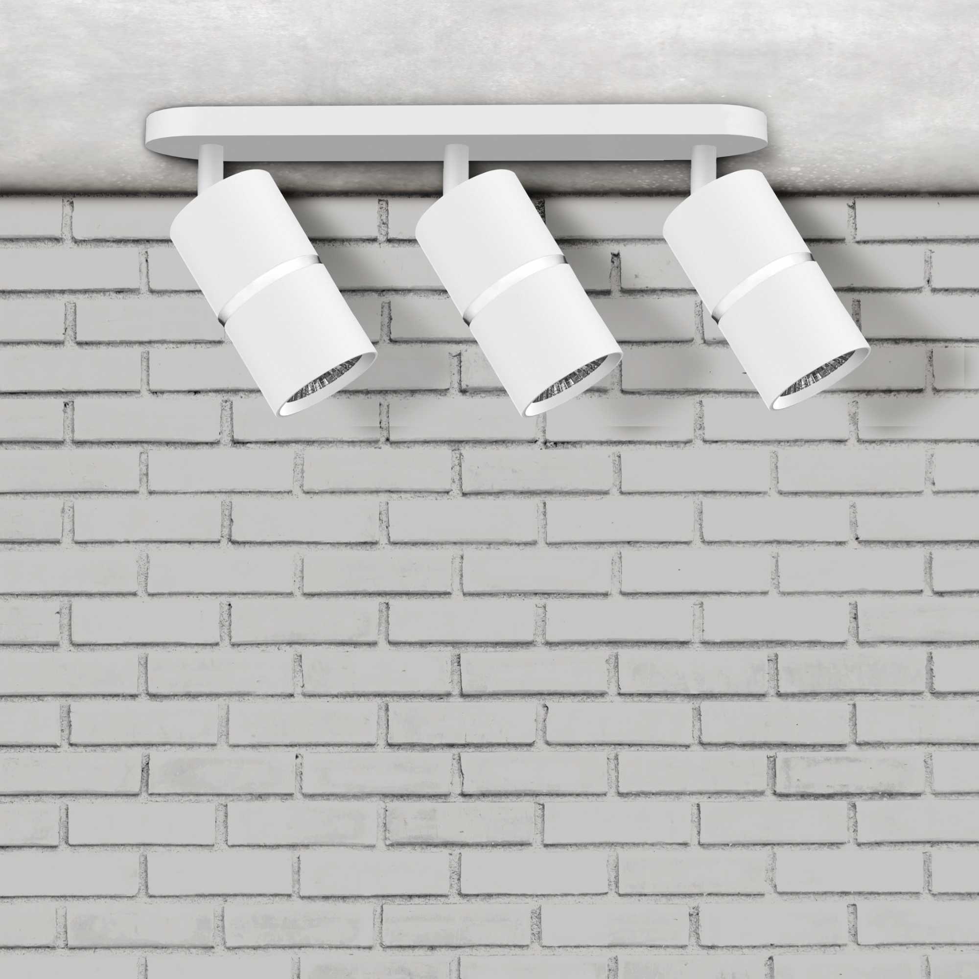 BAMBOO to trzypunktowa, nowoczesna oprawa, listwa z wymiennym źródłem światła, wykonana z aluminium w kolorze białym. Elementem dekoracyjnym oprawy jest srebrny pierścień pośrodku każdego klosza.