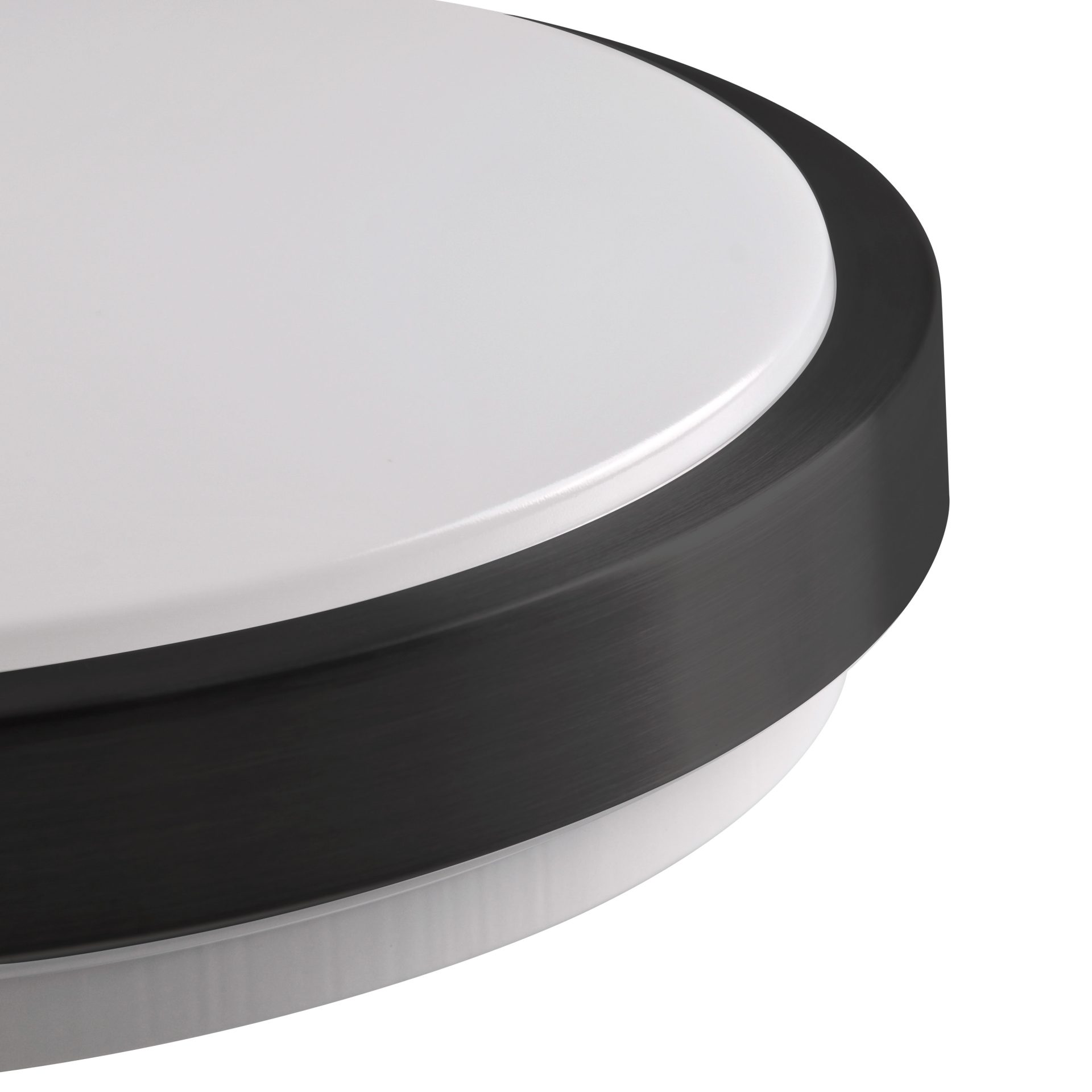 Dodatkowo plafon ozdobiony jest czarnym, aluminiowym szczotkowanym pierścieniem, który wzbogaca walory estetyczne produktu.