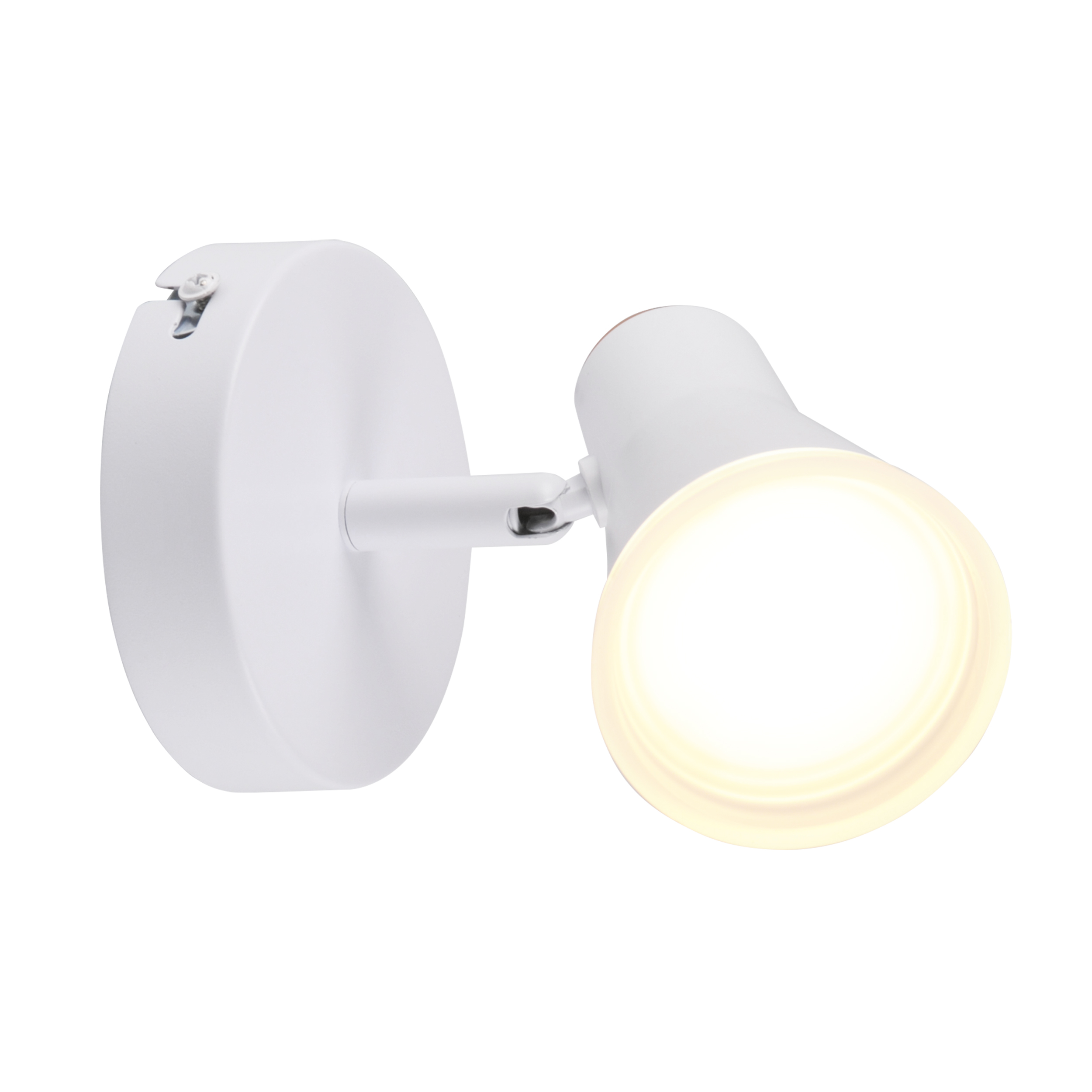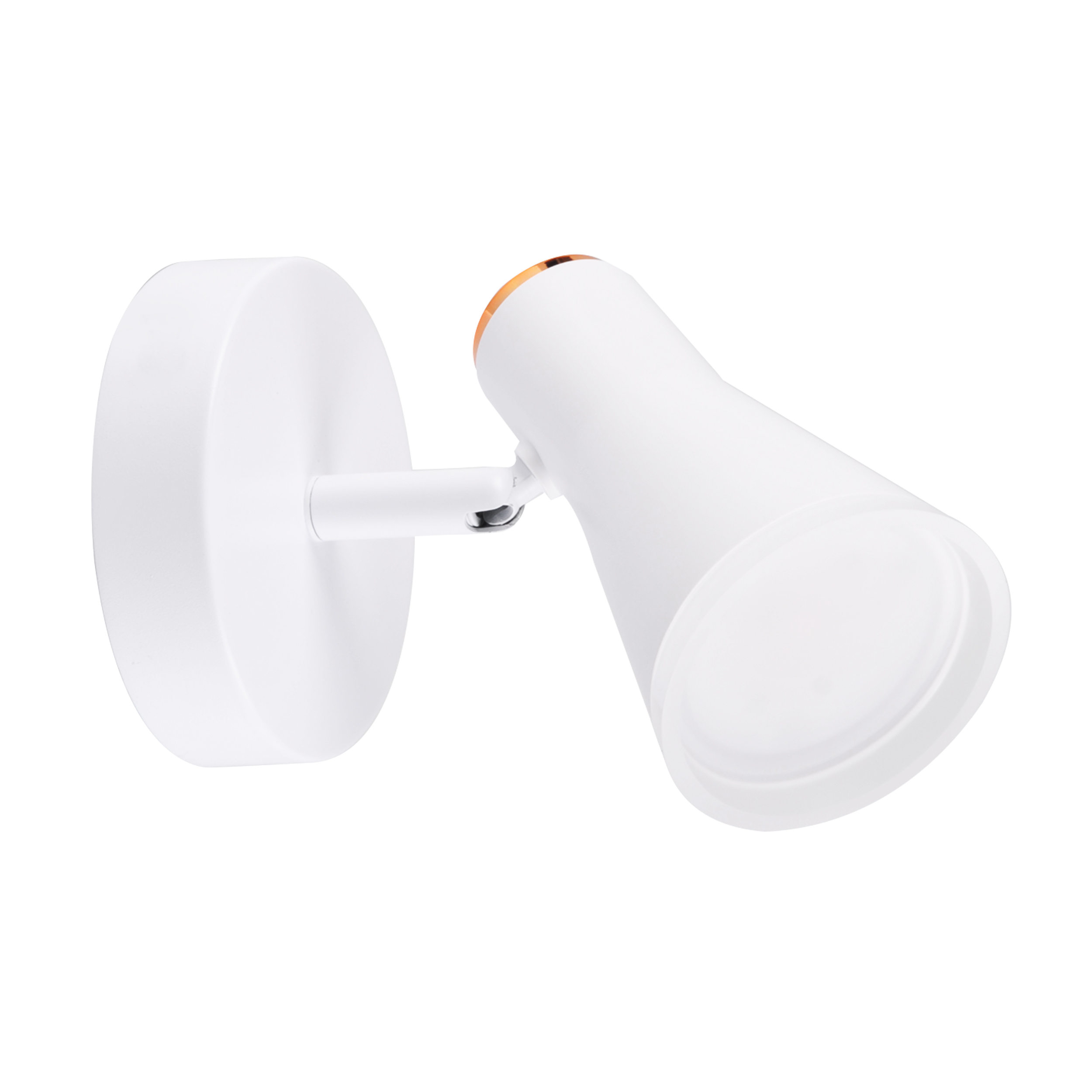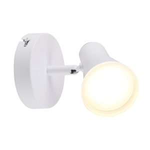 BERG to nowoczesny kinkiet, oprawa z regulowanym niewymiennym źródłem światła LED, wykonana z metalu w kolorze białym oraz akrylowej obręczy.