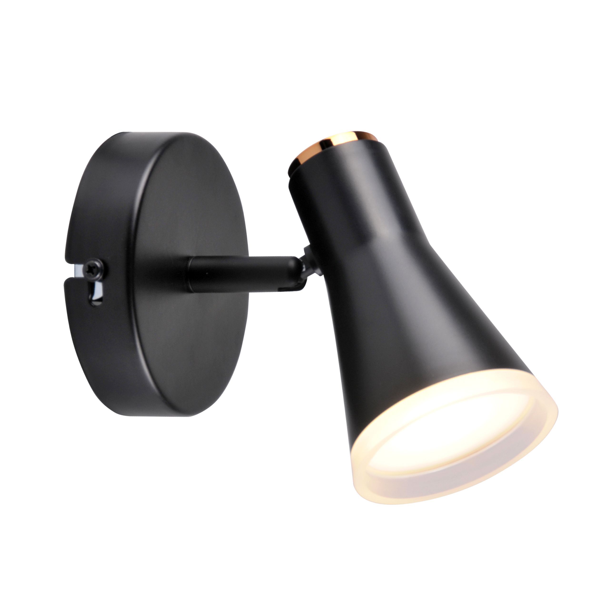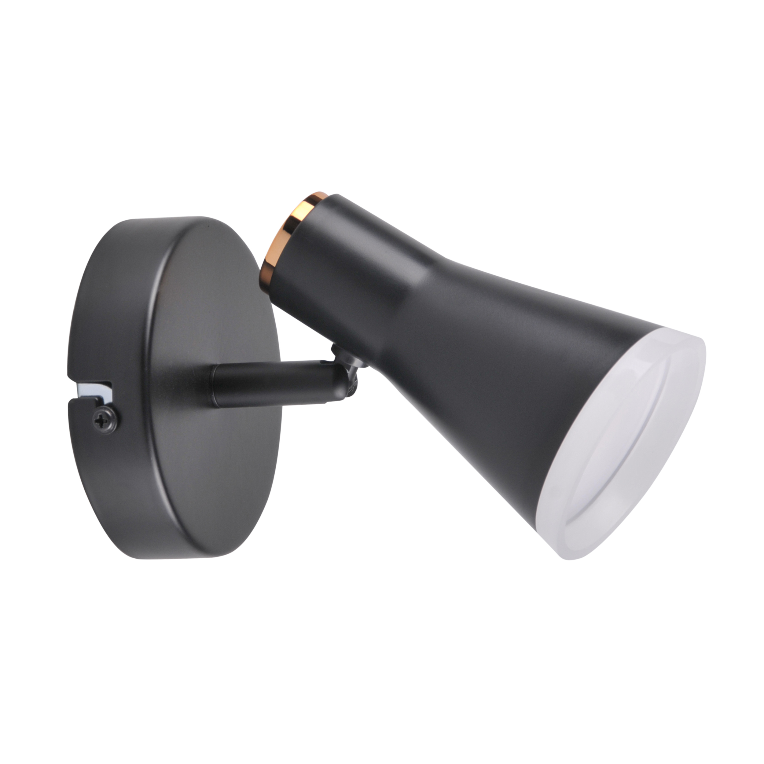 BERG to nowoczesny kinkiet, oprawa z regulowanym niewymiennym źródłem światła LED, wykonana z metalu w kolorze czarnym oraz akrylowej obręczy.
