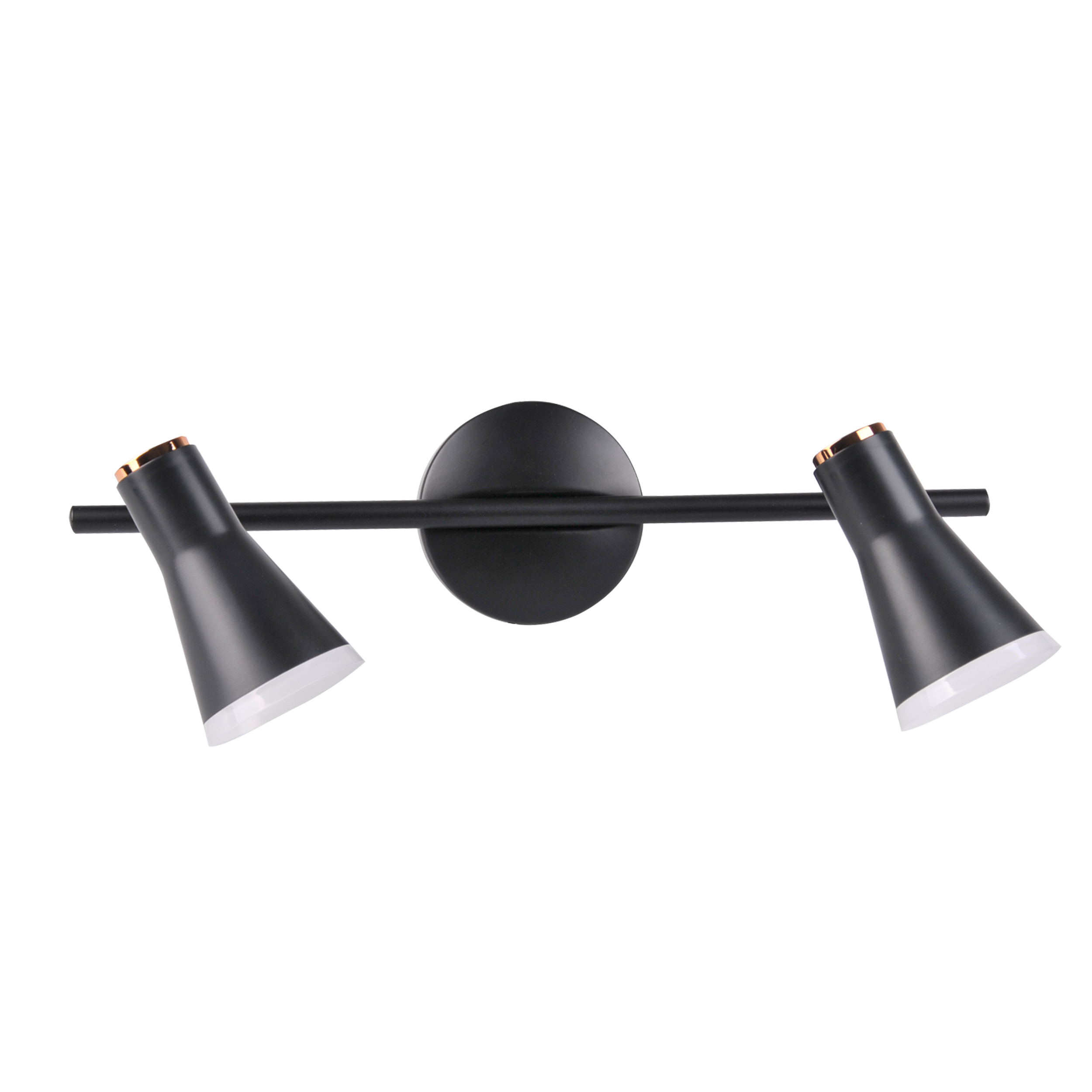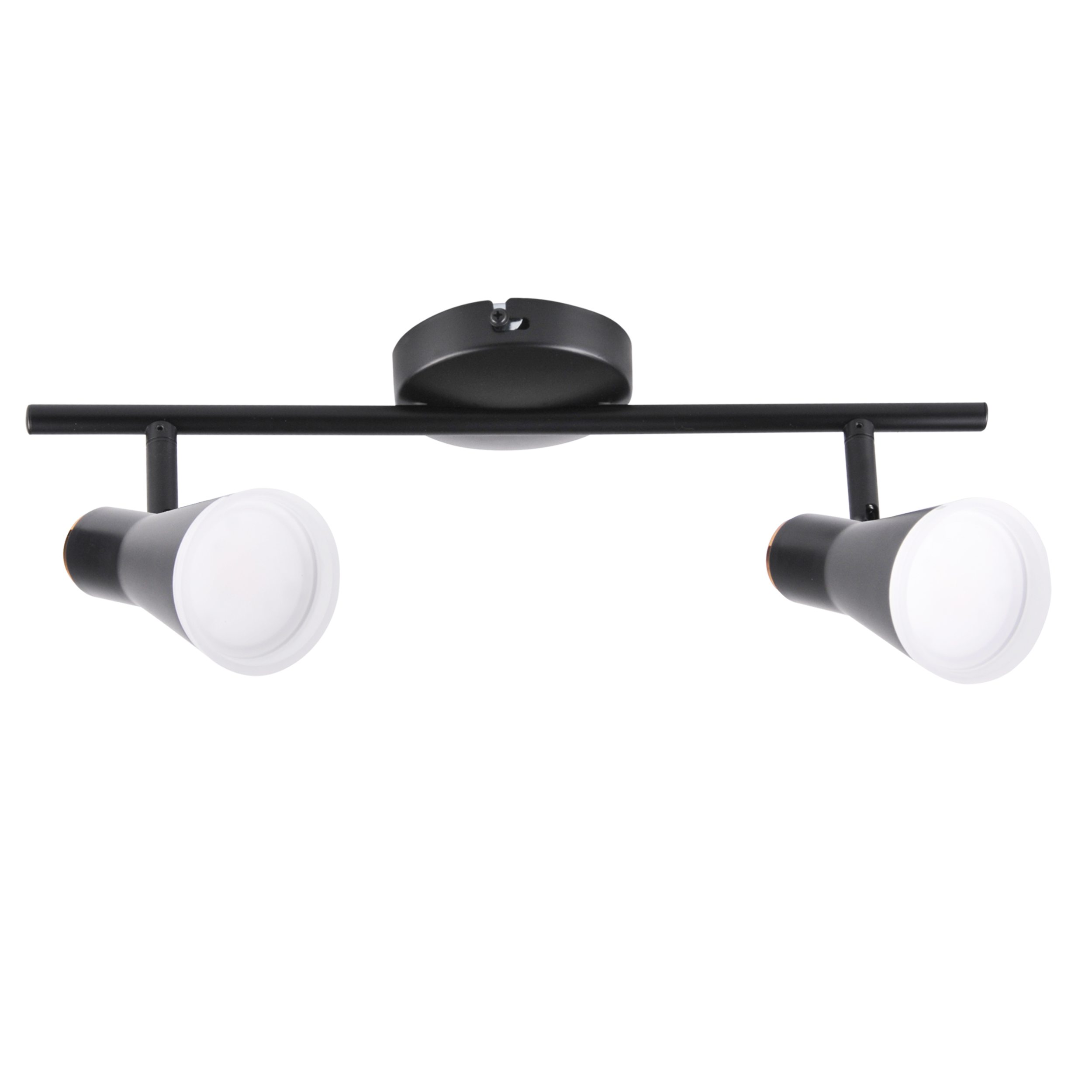 BERG to dwupunktowa nowoczesna lampa, listwa ścienno-sufitowa z niewymiennym źródłem światła LED, wykonana z metalu w kolorze czarnym oraz akrylowej obręczy.