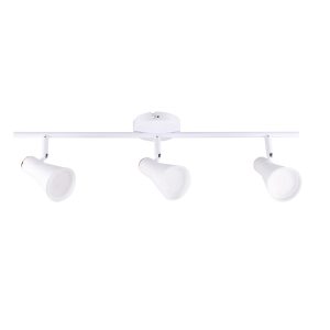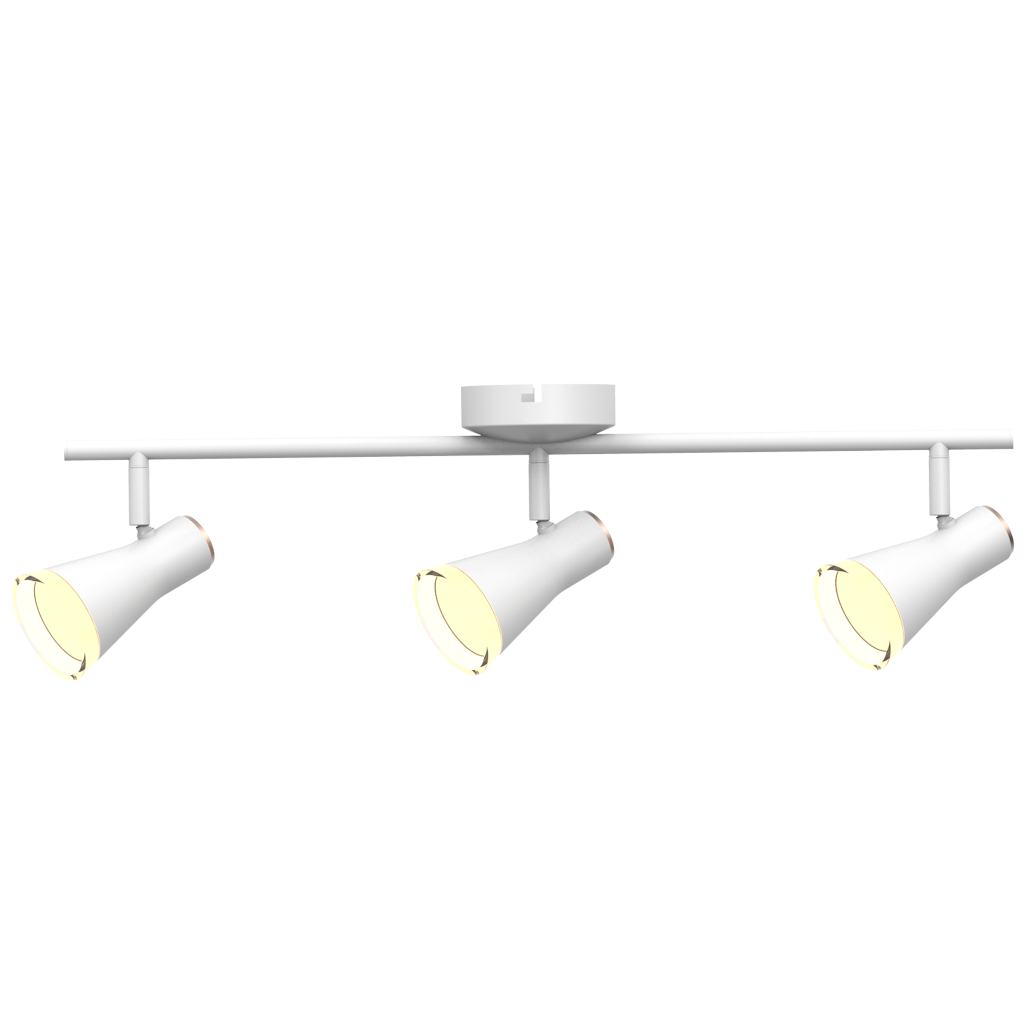 BERG to trzypunktowa nowoczesna lampa, listwa ścienno-sufitowa z niewymiennym źródłem światła LED, wykonana z metalu w kolorze białym oraz akrylowej obręczy.
