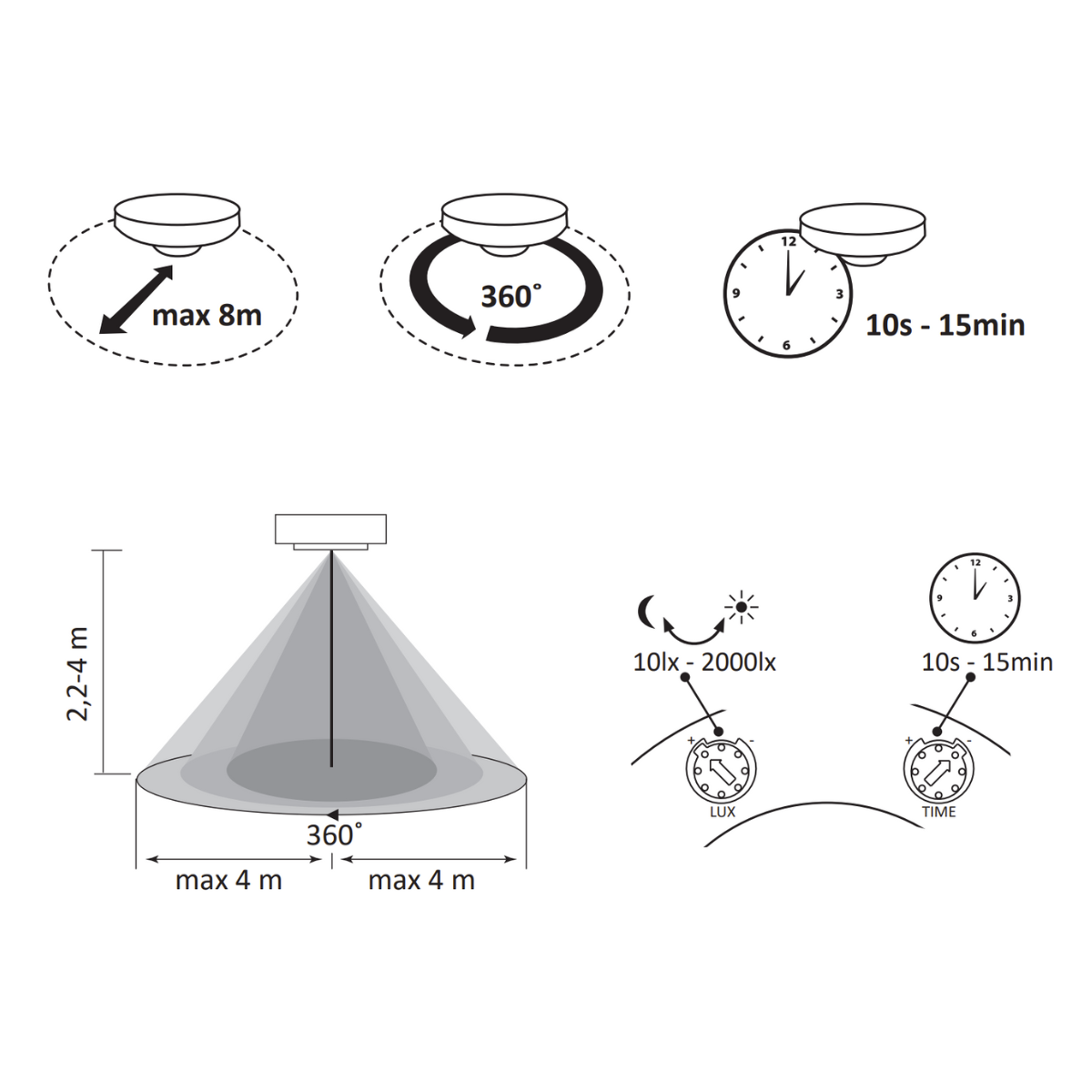 Czujnik jest detektorem ruchu. Wykrywa nawet najmniejsze poruszenie w obserwowanym obszarze. Urządzenie cechuje się niewielką emisją mocy i bardzo dobrą detekcją ruchu. Wbudowany czujnik zmierzchowy pozwala wykrywać dzień i noc.
