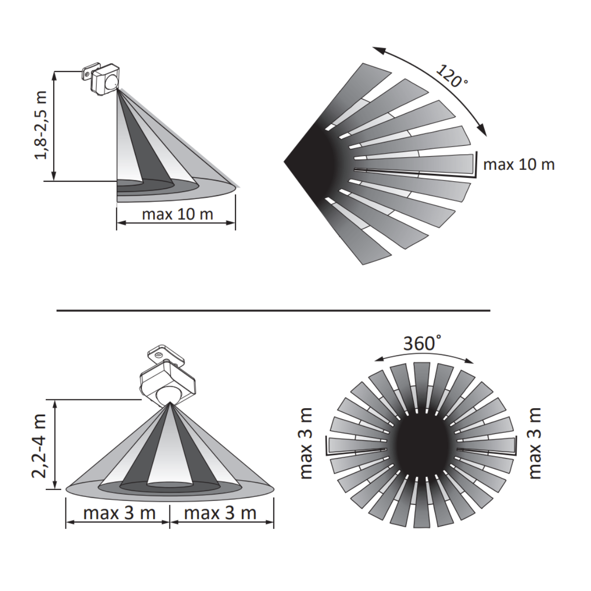 Maksymalny poziomy kąt działania czujnika ruchu wynoszący 360°