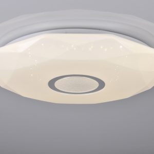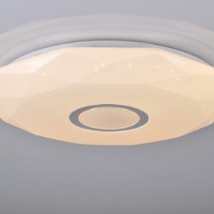 Plafon z pilotem za pomocą którego można płynnie zmienić barwę świecenia od ciepłej białej przez neutralną po zimno białą (3000K-4000K-6000K) oraz wybrać ilość światła, plafon z możliwością ściemniania.