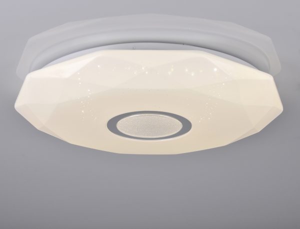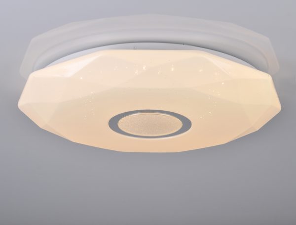 Plafon z pilotem za pomocą którego można płynnie zmienić barwę świecenia od ciepłej białej przez neutralną po zimno białą (3000K-4000K-6000K) oraz wybrać ilość światła, plafon z możliwością ściemniania.