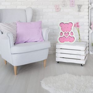 Drewniana lampka dekoracyjna LED MIŚ różowy.
