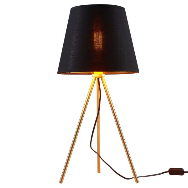 Lampa stołowa ELENA to niezwykle prosta i urocza lampa w klasycznym wydaniu. Lampa ze złotym wykończeniem oraz czarno-złotym kloszem pięknie prezentować się będzie w salonie, czy też sypialni.