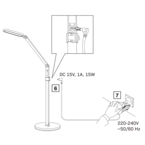 Lampka posiada regulację wysokości. Można ją dowolnie regulować. Maksymalna wysokość lampki to 164 cm, a po obniżeniu posiada 64 cm wysokości.
