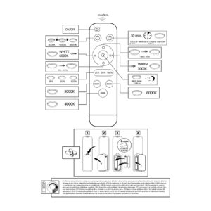 Wybór barwy światła pilotem: Płynnie regulowany pilotem od 100 do 5300lm (przy barwie neutralnej 4000K 48W).