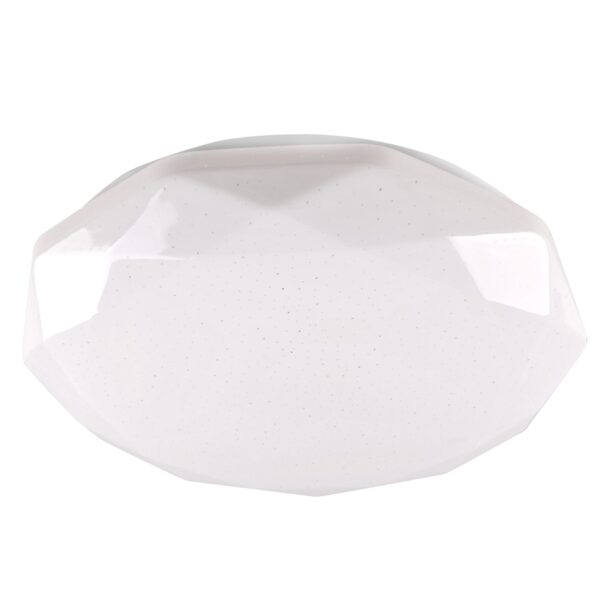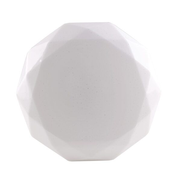 Mleczny klosz wspaniale rozprasza światło, dzięki czemu lampa świeci równomiernie na całej powierzchni, nie występuje efekt świecenia punktowego, czy zaciemnionego miejsca z jednej strony (jak w przypadku tradycyjnych plafonów z wkręcaną żarówką), nie powodując tym samym efektu olśnienia.
