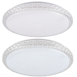 Plafon z pilotem za pomocą którego można płynnie zmienić barwę świecenia od ciepłej białej przez neutralną po zimno białą (3000K-4000K-6500K) oraz wybrać ilość światła, plafon z możliwością ściemniania.