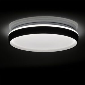 Plafon z pilotem za pomocą którego można płynnie zmienić barwę świecenia od ciepłej białej przez neutralną po zimno białą (3000K-4000K-6000K) oraz wybrać ilość światła, plafon z możliwością ściemniania.