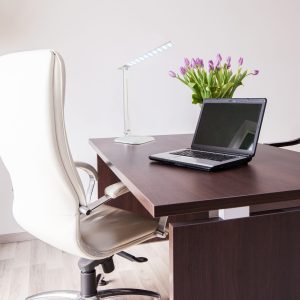 Nowoczesna lampka biurkowa LED wykonana z tworzywa sztucznego przeznaczona do zastosowań mieszkaniowych jak i biurowych.