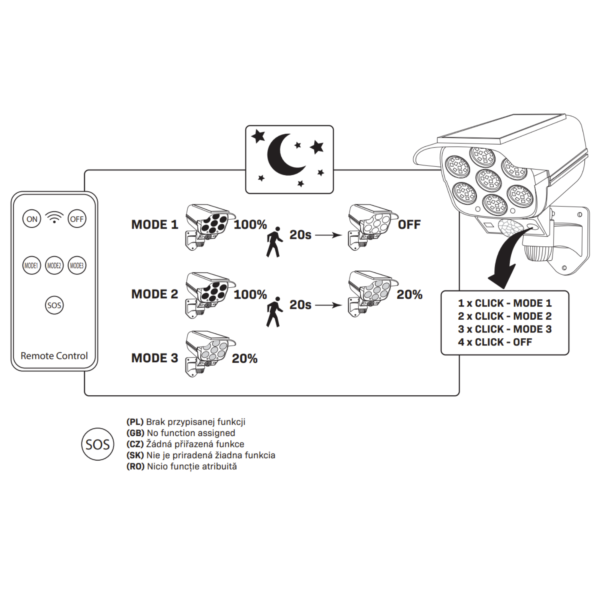 - Sterowanie lampy poprzez dołączony pilot, 3 tryby świecenia