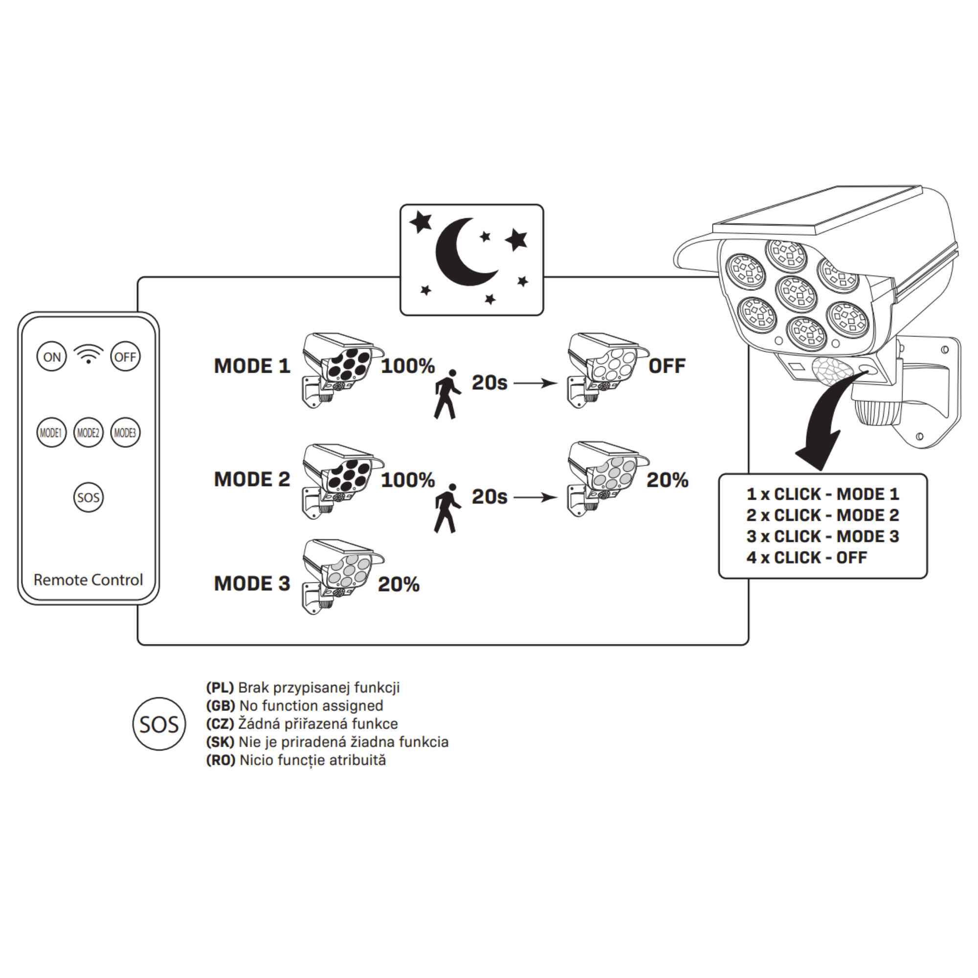 - Wbudowany czujnik zmierzchu – automatycznie włącza lampkę po zmierzchu i po wykryciu ruchu