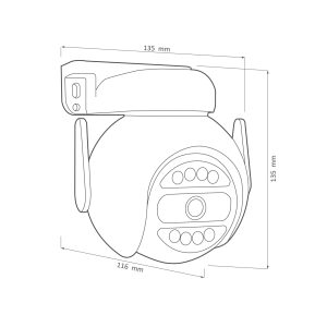 - Wymiary: 13,5 × 11,6 × 13,5 cm – kompaktowy, ale solidny format do montażu na elewacjach, ścianach i słupach.