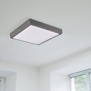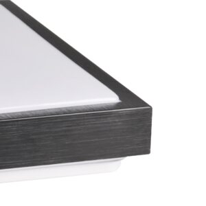 Plafon posiada dookoła aluminiową ramkę w kolorze czarnym szczotkowanym, która wzbogaca walory estetyczne produktu.