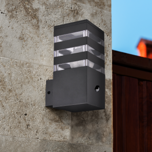 Sanico Goldlux kinkiet ogrodowy oprawa elewacyjna TEKSAS E27 z czujnikiem ruchu i zmierzchu grafitowa IP44 – 317667
