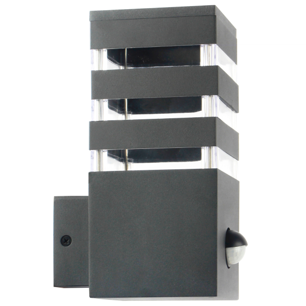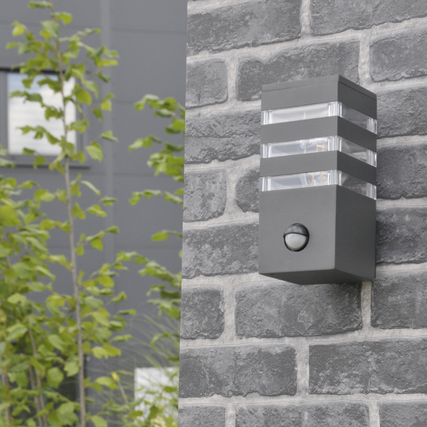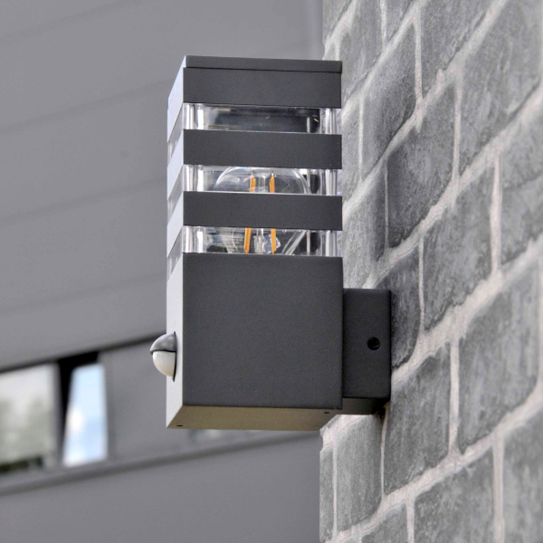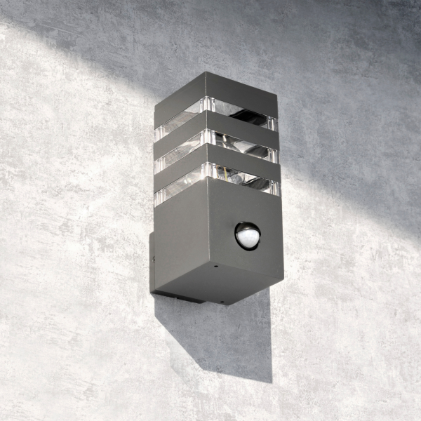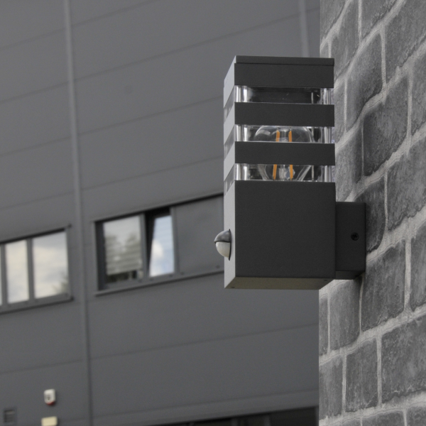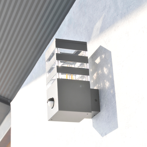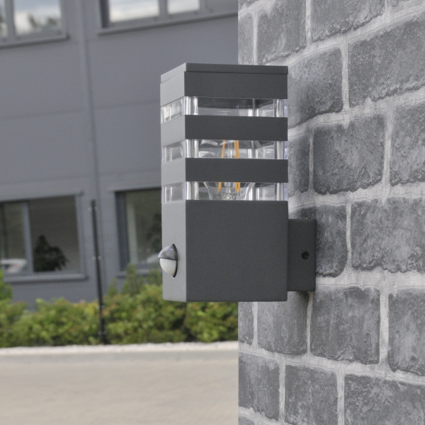 Sanico Goldlux kinkiet ogrodowy oprawa elewacyjna TEKSAS E27 z czujnikiem ruchu i zmierzchu grafitowa IP44 – 317667