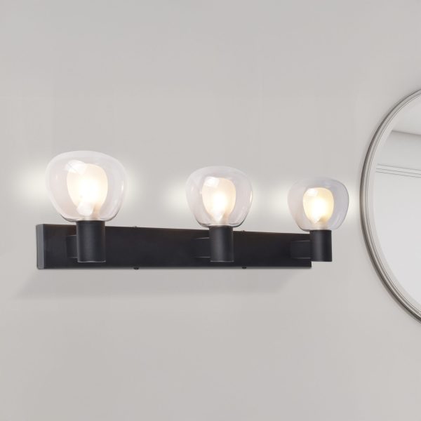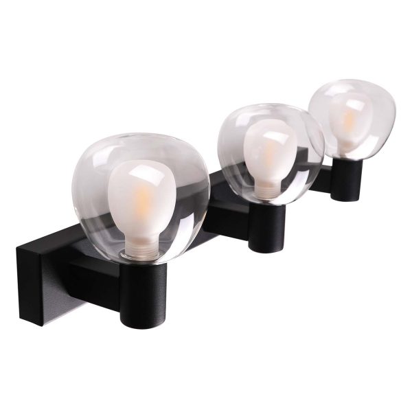 Kinkiet POLA 3 to elegancka i funkcjonalna oprawa oświetleniowa, która świetnie sprawdzi się w łazience – szczególnie w okolicy lustra. Kinkiet wykonany z aluminium w kolorze czarnym oraz trzech transparentnych, szklanych kloszy, łączy w sobie nowoczesny design i praktyczne zastosowanie.