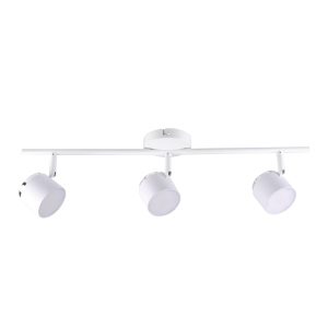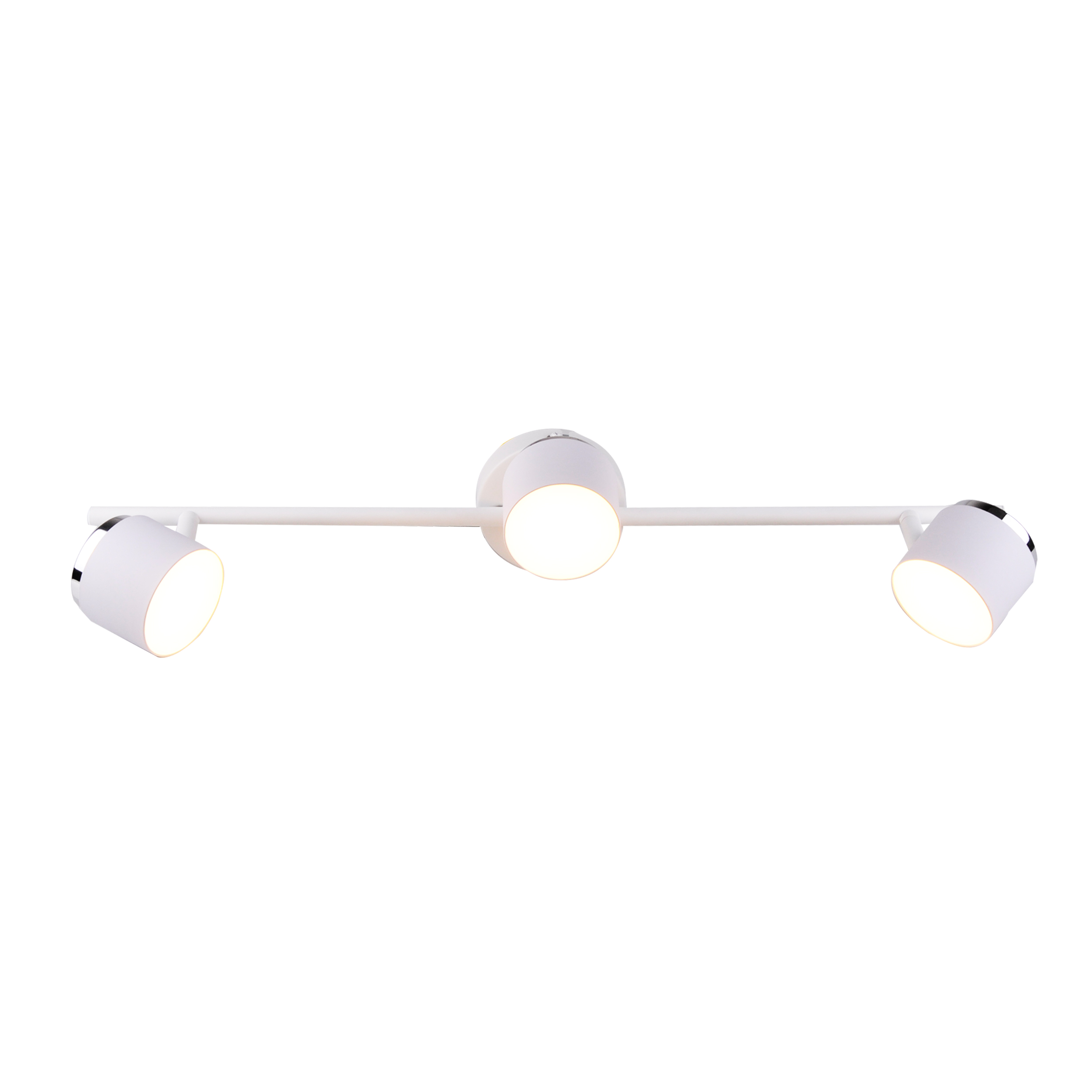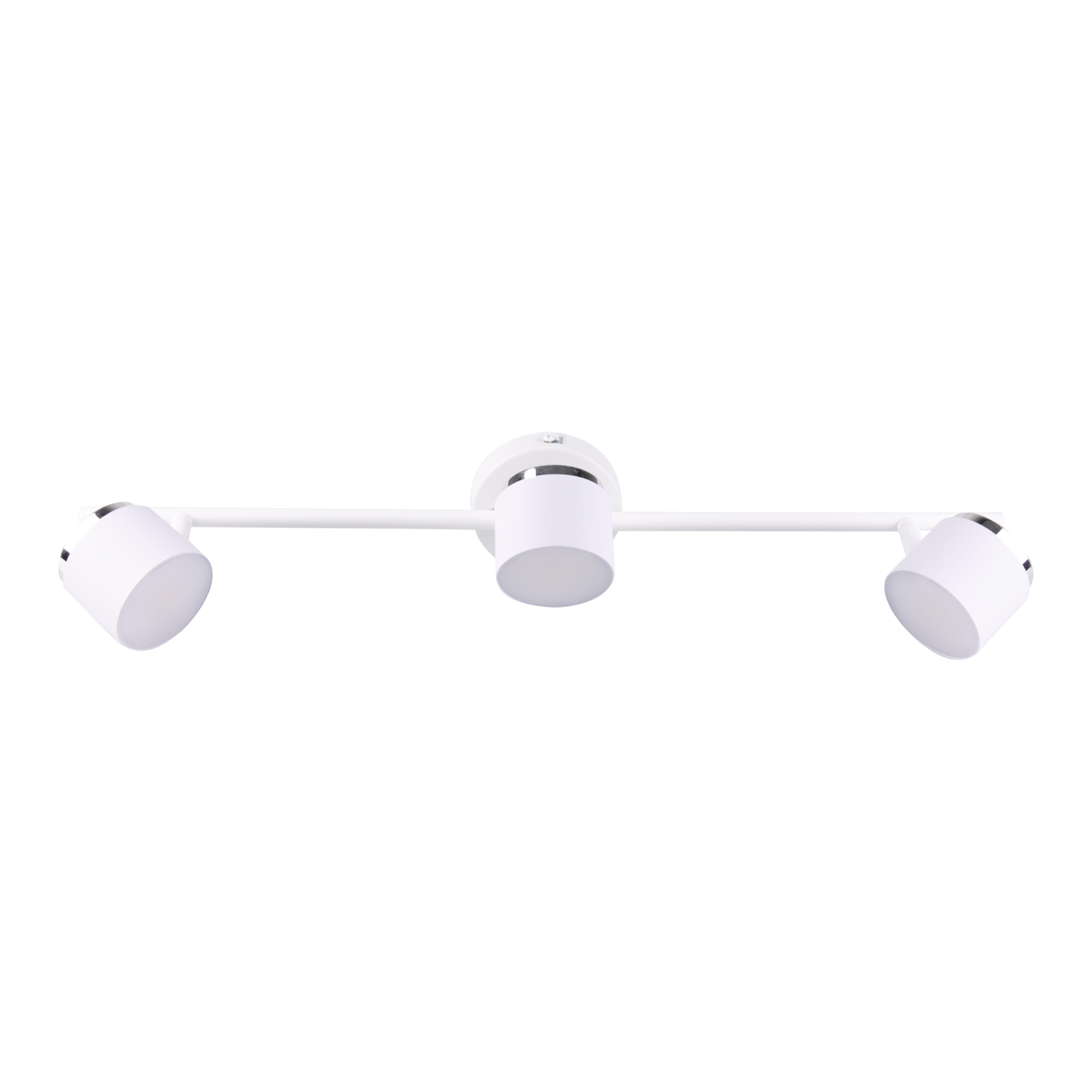 KUBIK to trzypunktowa nowoczesna lampa, listwa ścienno-sufitowa z niewymiennym źródłem światła LED, wykonana z aluminium w kolorze białym z chromowym wykończeniem.
