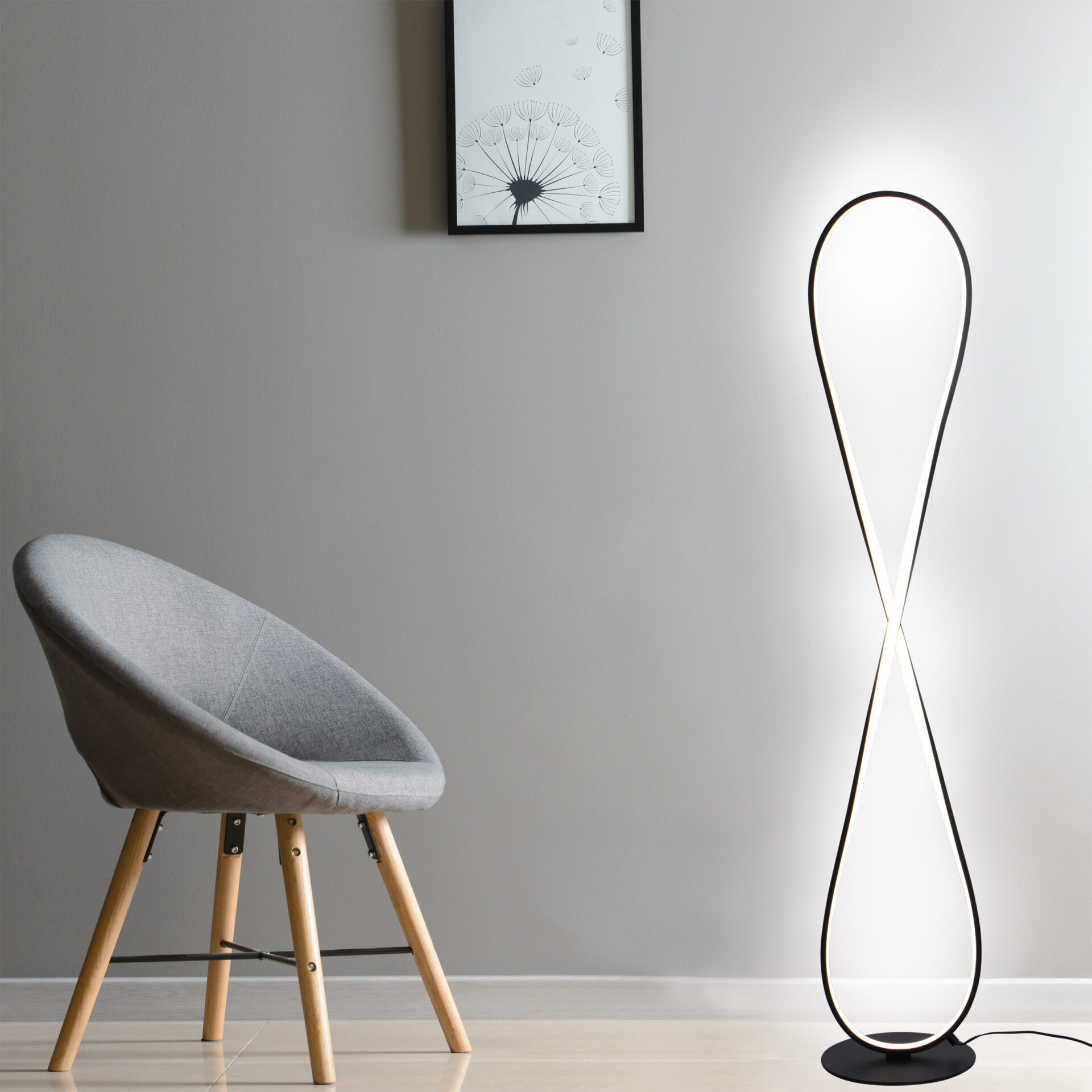 Ta czarna lampa o unikalnym kształcie odwróconej nieskończoności (∞) wprowadzi do Twojego wnętrza nowoczesny styl i wyjątkową atmosferę. Wysokość 120 cm sprawia, że jest to idealny element do podkreślenia przestrzeni, a jej minimalistyczny design pasuje do różnych aranżacji.