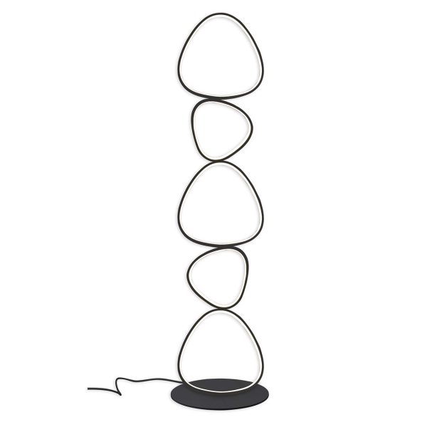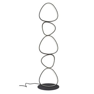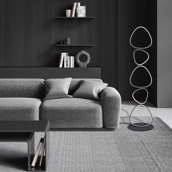 Lampa podłogowa PETRA 48W to wyjątkowy element wystroju wnętrza, który łączy nowoczesny design z praktycznym zastosowaniem. Jej smukła forma, oparta na zestawie nieregularnych pierścieni przypominające kamyki, wprowadza do przestrzeni poczucie lekkości i elegancji.