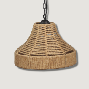 Lampa AUGUSTA ROPE to zwis o uniwersalnym charakterze. Klosz wykonany z czarnych, połączonych ze sobą drucików opleciony beżowym sznurkiem idealnie wpasowuje się we wnętrza w stylu boho, rustykalnym oraz vintage. Lampa świetnie będzie wyglądać w salonie, kuchni jak i w sypialni.