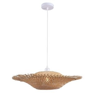 Średnica klosza wynosi 61 cm, co sprawia, że jest to okazała oprawa idealna do większych przestrzeni. Lampa wyposażona jest w popularny gwint E27, umożliwiający wybór żarówki zarówno pod kątem mocy, jak i barwy światła. Najlepiej prezentuje się z dekoracyjnymi żarówkami filamentowymi, które podkreślą urok plecionki i stworzą nastrojowy efekt. Wysokość zawieszenia można łatwo regulować poprzez skrócenie przewodu, co pozwala dopasować lampę do konkretnego pomieszczenia.