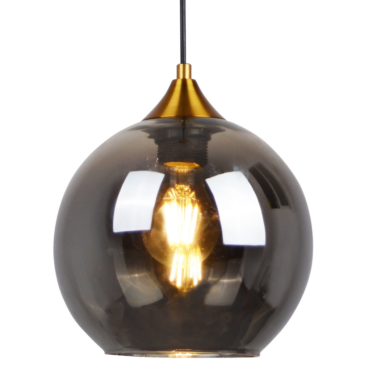 Złota podstawa lampy w połączeniu ze szklanym kloszem, czyni ją wyjątkowo elegancką i reprezentacyjną, a miękkie i przyjemne światło wydobywające się przez zadymiony klosz nadaje wnętrzu oryginalny charakter.