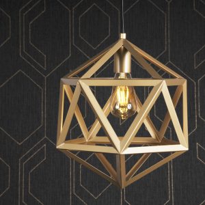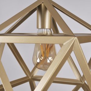DENMARK to nowoczesna lampa wisząca marki Sanico Goldlux, która łączy minimalistyczny design z geometryczną formą. Jej unikatowy klosz, wykonany z cienkiego złotego kątownika, tworzy przestrzenną figurę, eksponując źródło światła i nadając wnętrzu stylowego, industrialnego charakteru.