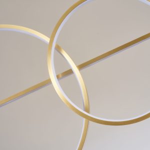 Wykonana z trwałego aluminium w stylowym złotym kolorze, lampa świetnie sprawdzi się w eleganckich salonach, jadalniach czy przestrzeniach komercyjnych. Zintegrowane źródło światła LED o mocy 42W, temperaturze barwowej 4000K i jasności 4200 lumenów zapewnia przyjemne, neutralne oświetlenie. Produkt wyposażony został w źródło światła o klasie energetycznej E i stopniu ochrony IP20, przeznaczony do użytku wewnętrznego.