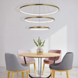 Lampa wisząca LED LEA 3 to nowoczesne i stylowe oświetlenie sufitowe, które doskonale sprawdzi się w salonie, jadalni, kuchni, biurze czy przestrzeniach komercyjnych. Dzięki swojej eleganckiej, złotej kolorystyce oraz minimalistycznemu designowi pasuje do wnętrz urządzonych w stylu nowoczesnym, loftowym, industrialnym i minimalistycznym.