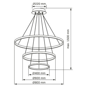 | Wymiary lampy | Ø80 cm/Ø60 cm/Ø40 cm, max wysokość 150 cm |