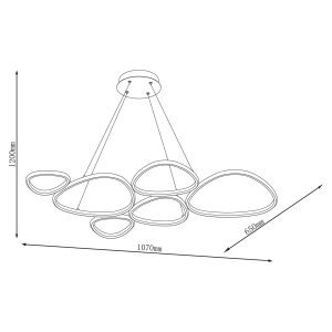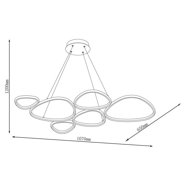 Szerokość lampy wynosi 107 cm, co czyni ją idealnym wyborem do większych pomieszczeń, gdzie będzie pełnić rolę głównego źródła światła, a jednocześnie oryginalnej dekoracji.