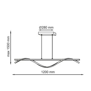 Dzięki regulowanym linkom, lampa umożliwia dopasowanie wysokości do indywidualnych potrzeb – szerokość oprawy to 120 cm, a maksymalna wysokość zawieszenia wynosi 150 cm.