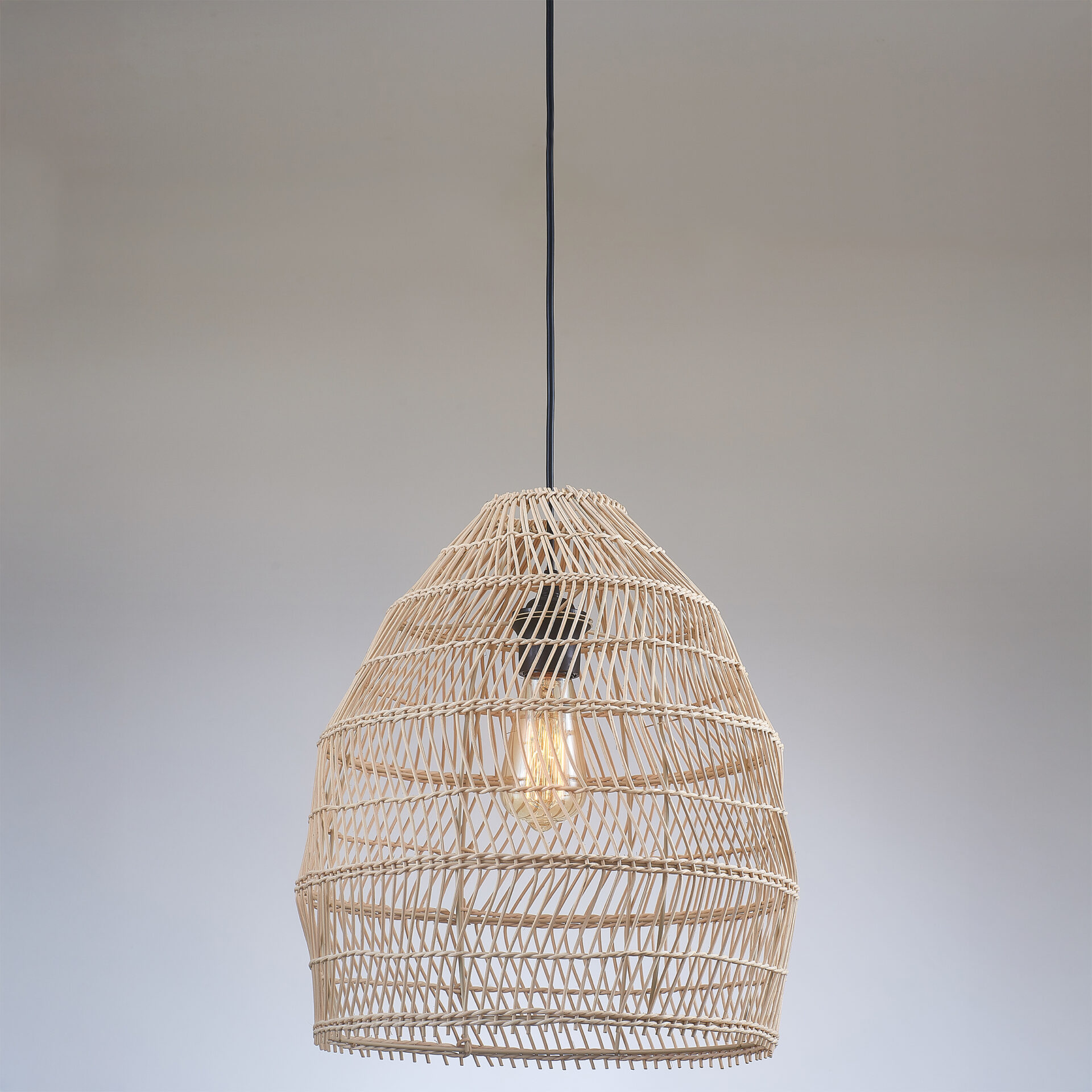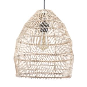 Niezwykle oryginalna i stylowa lampa wisząca SAKURA w kolorze beżowym to wyjątkowy dodatek, który idealnie wpisuje się w trendy współczesnych aranżacji w stylu boho. Jej abażur, misternie wykonany z bambusowego sznura, tworzy delikatną siateczkę, przez którą subtelnie przebija światło, tworząc na ścianach i suficie efektowne wzory. Ta lampa to nie tylko źródło światła, ale także dekoracyjny element, który wprowadza do wnętrza ciepło, przytulność i naturalny urok.
