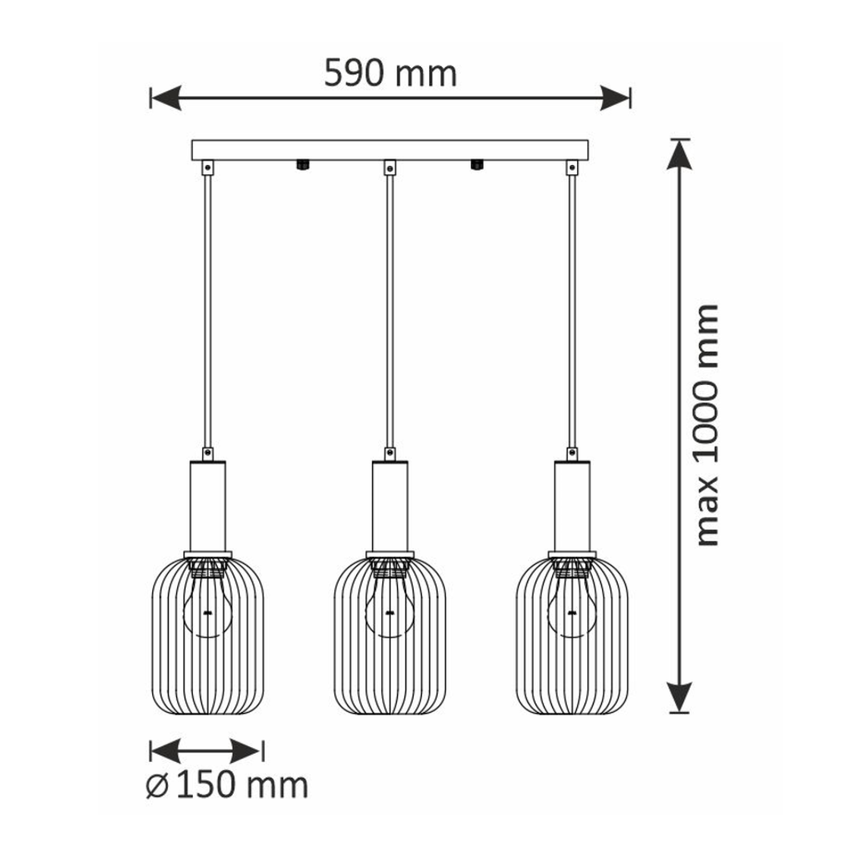 Ze względu na możliwość regulacji poszczególne klosze lampy można zawiesić na różnej długości – maksymalnie do 1000mm.