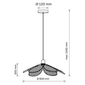 Lampa wisząca TOBAGO to wyjątkowe połączenie naturalnych materiałów i finezyjnego designu. Klosz wykonany jest z plecionki z rafi, uformowanej w nakładające się płatki, które przypominają rozwinięty kwiat. Każdy płatek wykończony jest czarną tasiemką, co nadaje lampie subtelnej elegancji i podkreśla szczegóły wykonania.