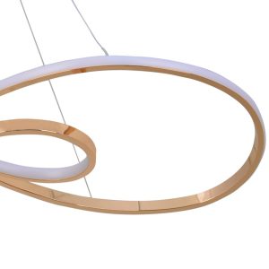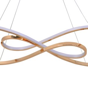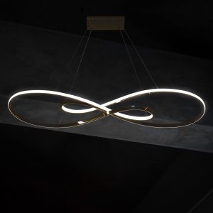 Nowoczesna lampa wisząca Sanico Goldlux ZUMBA to połączenie elegancji, wydajności i designerskiej formy. Jej unikalny kształt, inspirowany symbolem nieskończoności, przyciąga wzrok i nadaje wnętrzu wyjątkowego charakteru. Wykonana z wysokiej jakości aluminium w modnym, złotym wykończeniu, doskonale wpasuje się w nowoczesne salony, jadalnie lub przestrzenie komercyjne.