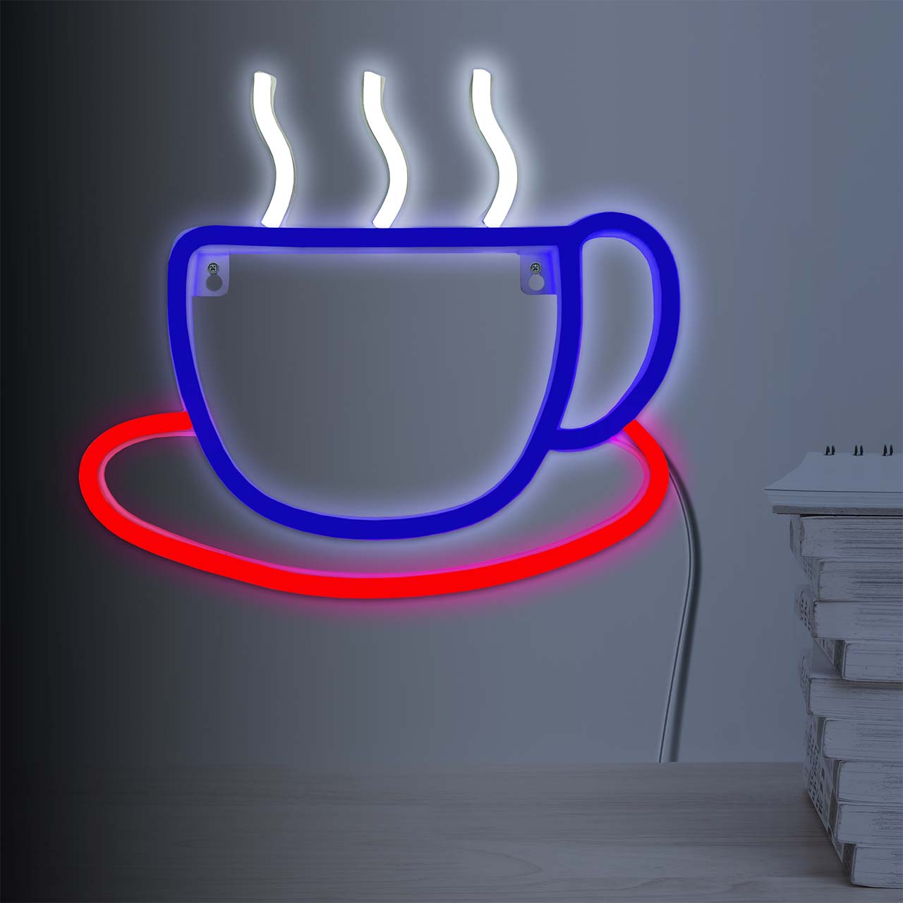 Neonowa lampka LED w kształcie kubka kawy lub herbaty – idealna do kuchni, kawiarni czy domowego biura. Stylowa i praktyczna dekoracja z przyjemnym światłem. (IP20, zasilanie USB, kompaktowe wymiary).