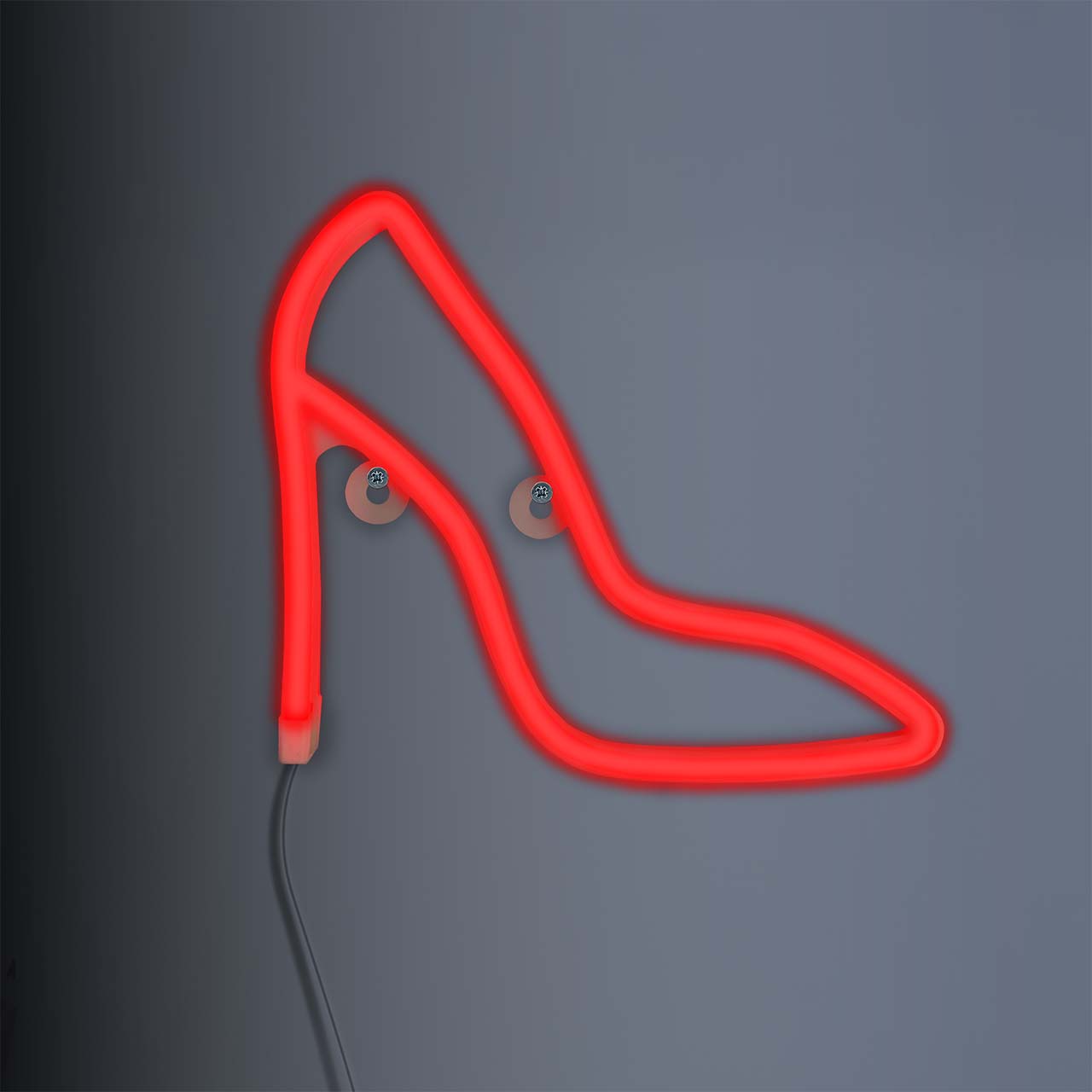 Kobiecy akcent w formie neonowej lampki LED w kształcie szpilki. Stylowa dekoracja do garderoby, butiku czy sypialni. (IP20, kompaktowe, zasilanie USB).