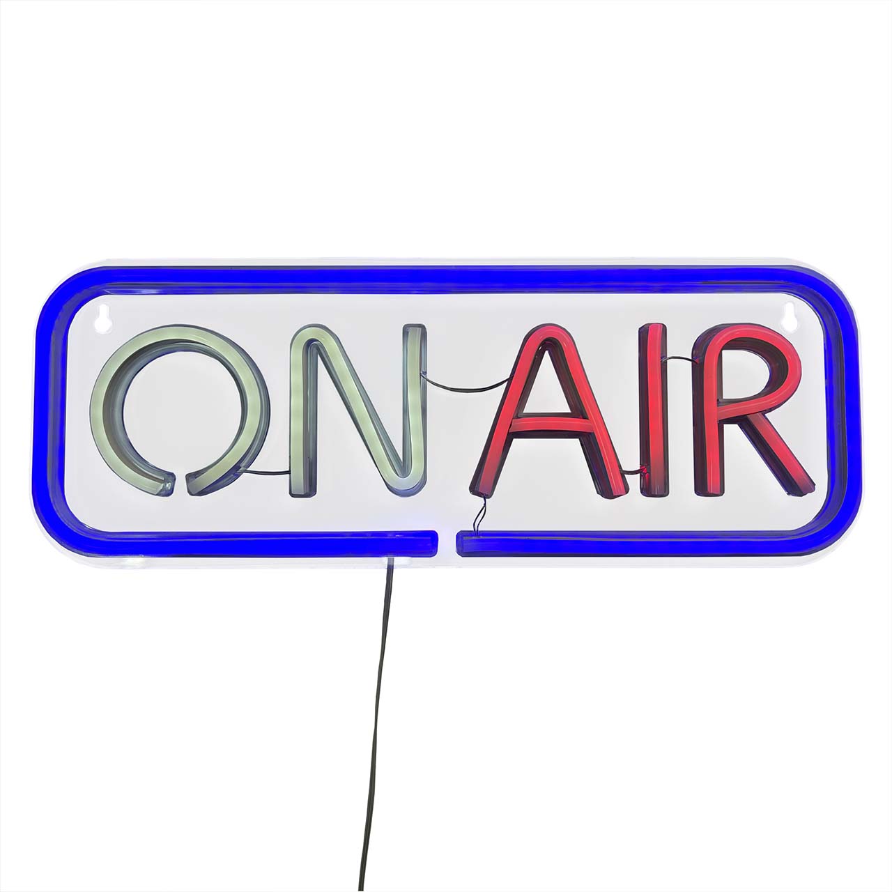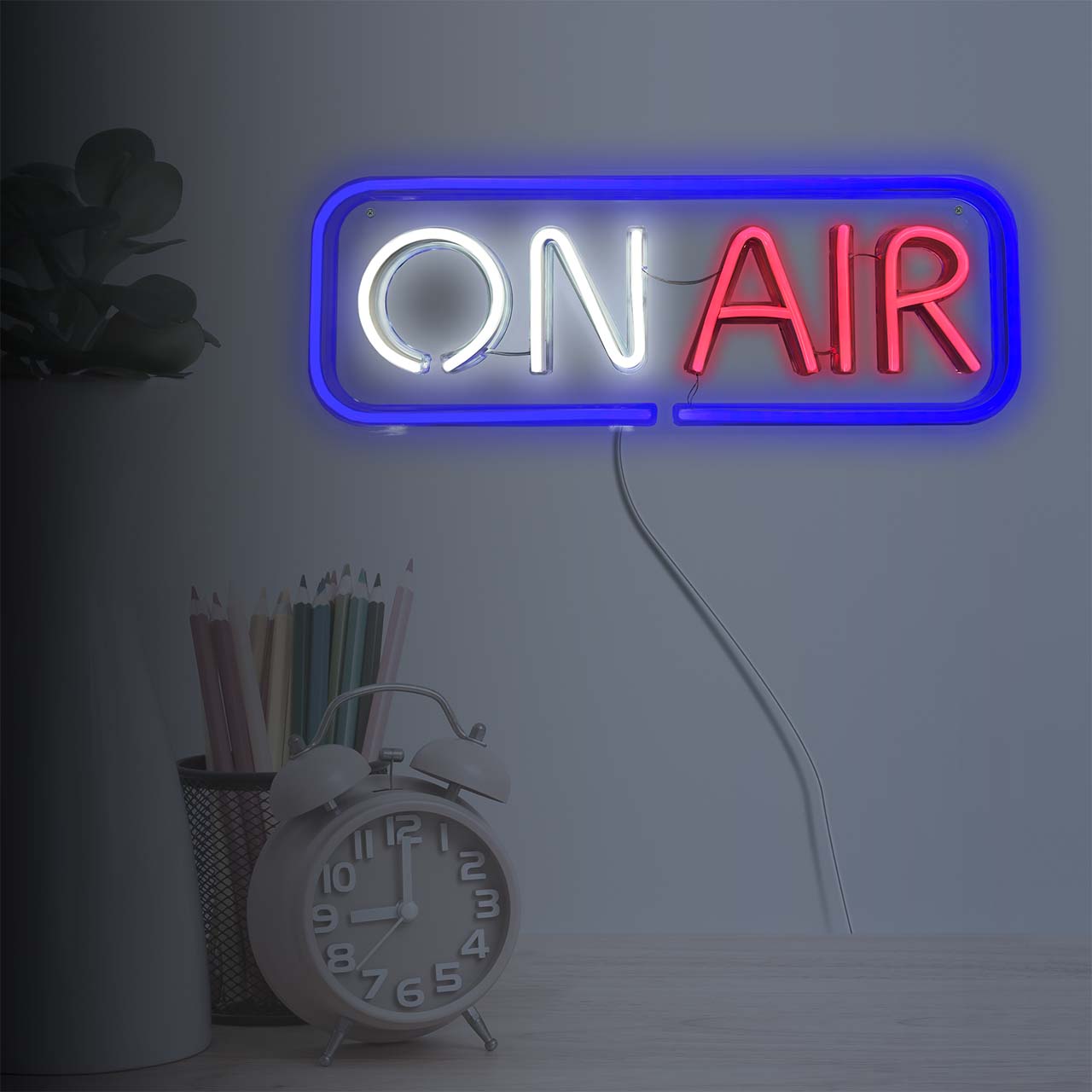 Stylowa lampka dekoracyjna LED w formie neonu z napisem “ON AIR”, idealna do pokoju, studia, biura czy domowego studia nagrań.