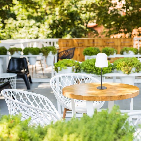 Model LUCIA wyposażony jest w akumulator ładowany poprzez nowoczesne złącze USB-C, dzięki czemu lampka jest całkowicie mobilna i może być używana zarówno w domu, jak i na tarasie, balkonie czy w ogrodzie, a stopień ochrony IP44 zapewnia odporność na warunki atmosferyczne.