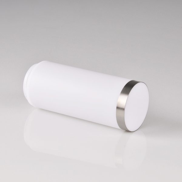 Klosz został wykonany z tworzywa sztucznego ozdobiony satynowym aluminiowym pierścieniem.