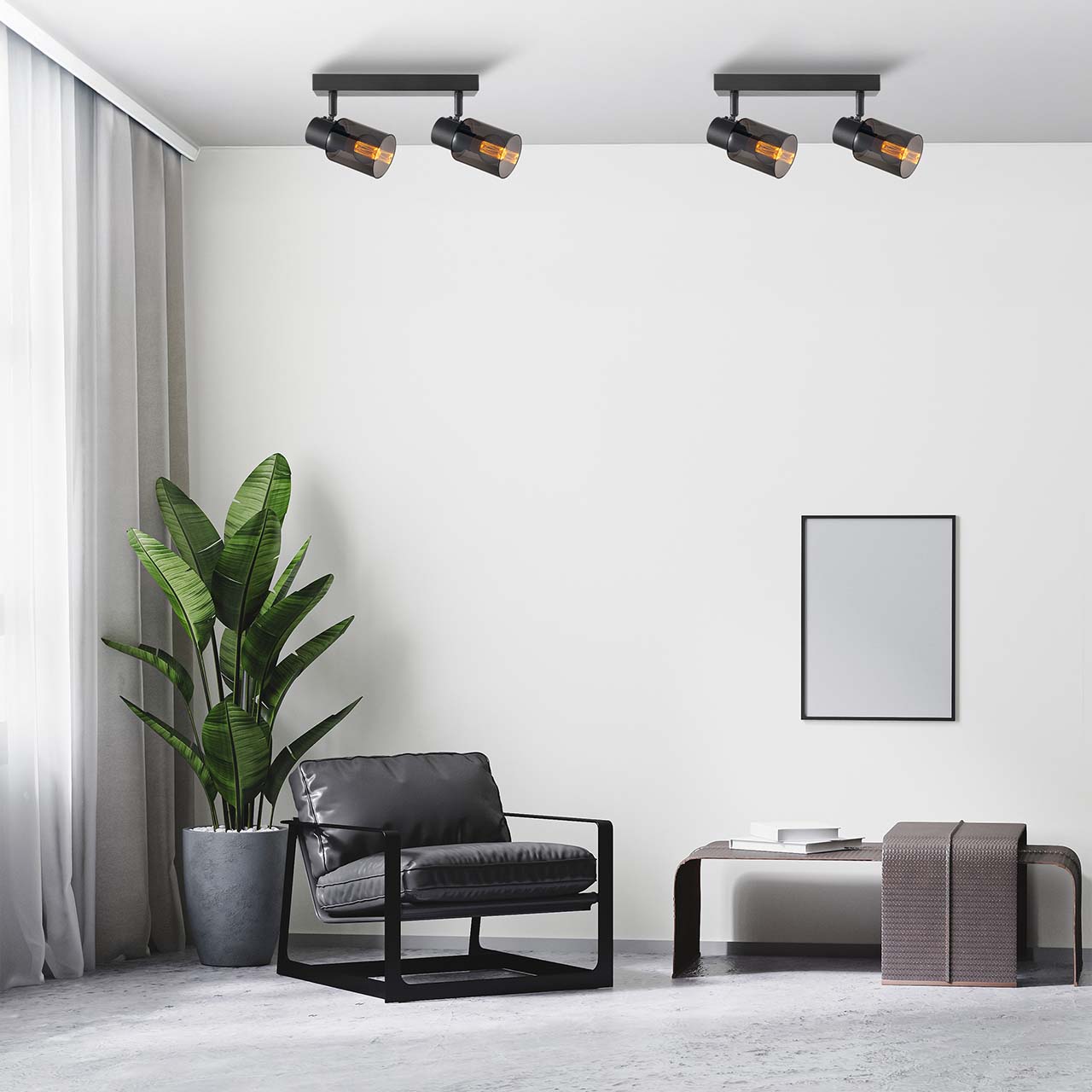 Oprawa REBECCA 2xE14 marki Sanico Goldlux to stylowa listwa oświetleniowa, która doskonale sprawdzi się zarówno jako oprawa ścienna (kinkiet), jak i sufitowa (plafon). Wykonana z solidnego aluminium malowanego proszkowo na kolor czarny, wyróżnia się nowoczesnym i eleganckim wyglądem. Całość uzupełniają dwa dymione, czarne klosze, które nadają wnętrzu przytulnego i subtelnego charakteru.